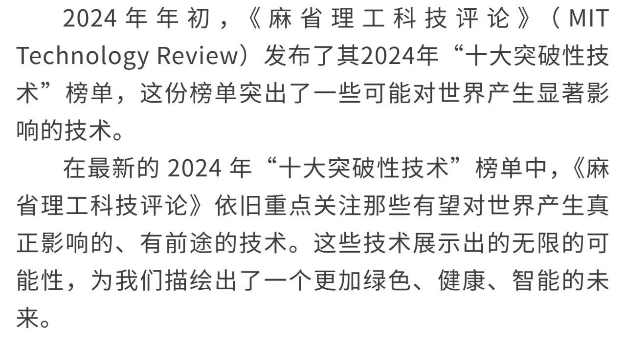 【前沿热点】MIT发布2024全球十大突破性技术榜单
