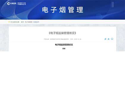 国家烟草专卖局电子烟监督管理司发布《电子烟监督管理状况》2025-12-29国家烟草专卖局电子烟监督管理司发布《电子烟监督管理状况》