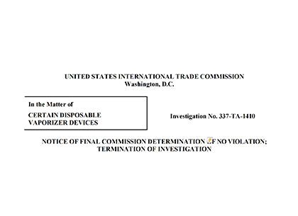 涉35家电子烟企业的337案迎终裁:ITC认定雷诺电子烟专利无效2026-03-13涉35家电子烟企业的337案迎终裁:ITC认定雷诺电子烟专利无效 -